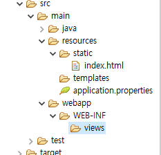 webapp 밑에 흔히 볼수있는 WEB-INF 와 views 폴더를 생성해줍니다.
