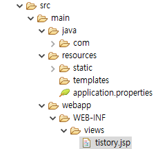 그다음에 views 에 tistory.jsp 파일을 생성해줍니다.