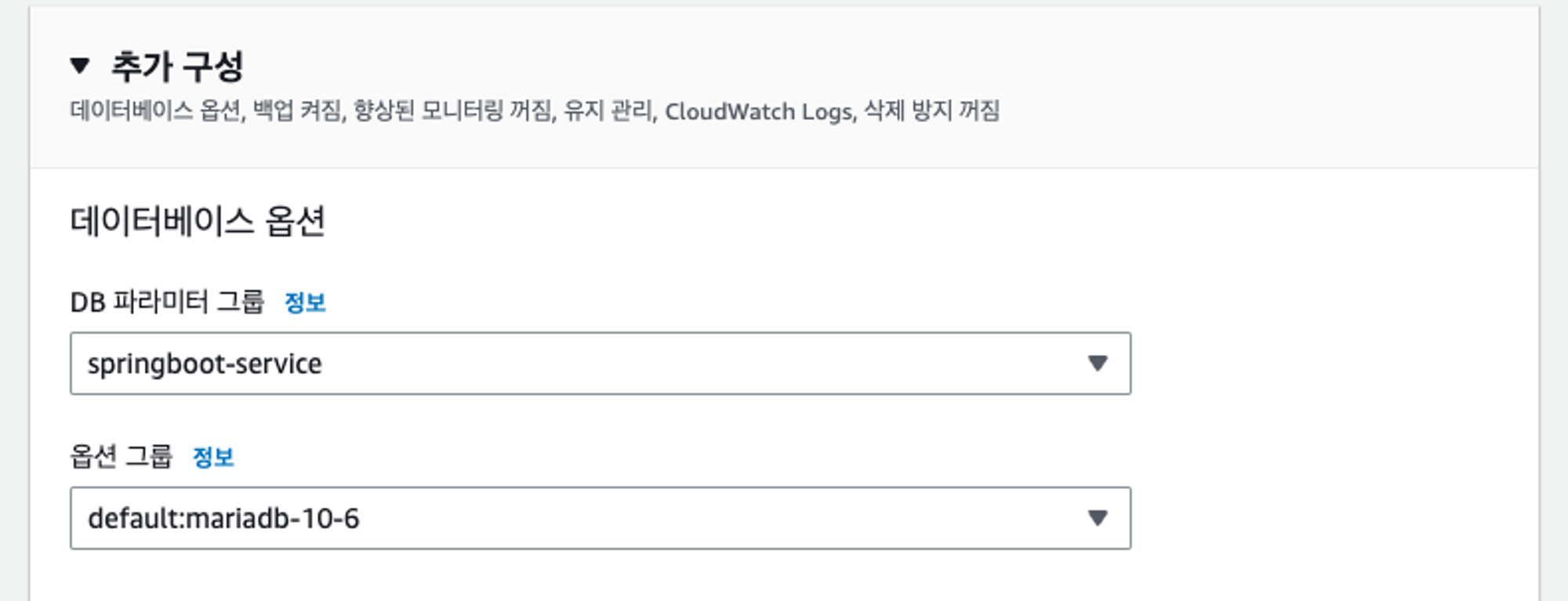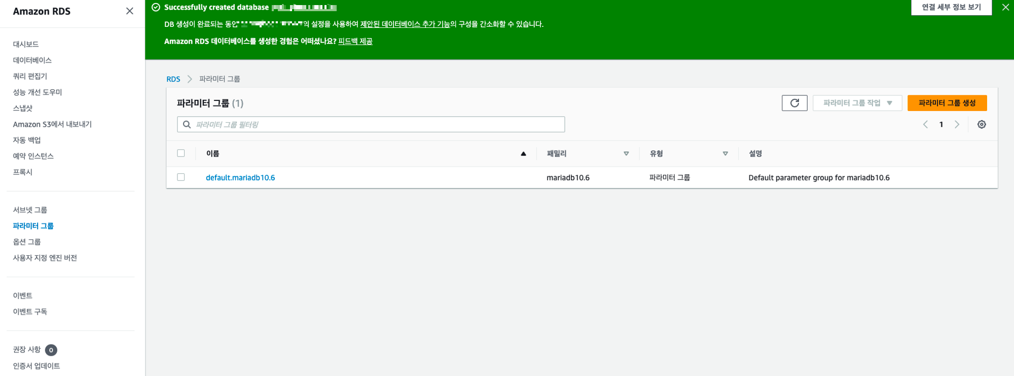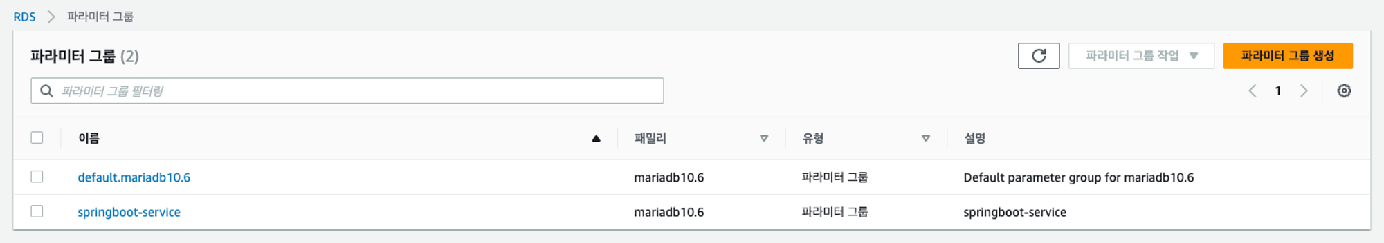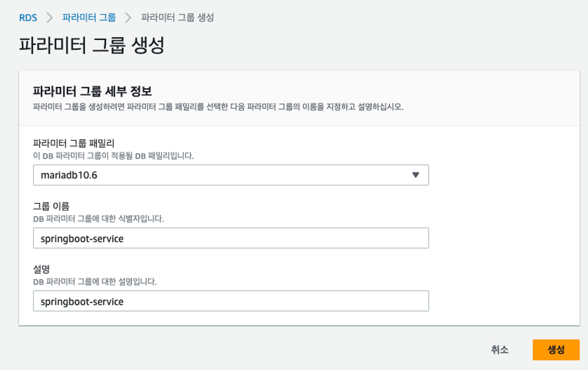 파라미터 그룹 생성은 RDS DB버전하고 맞춰야한다.