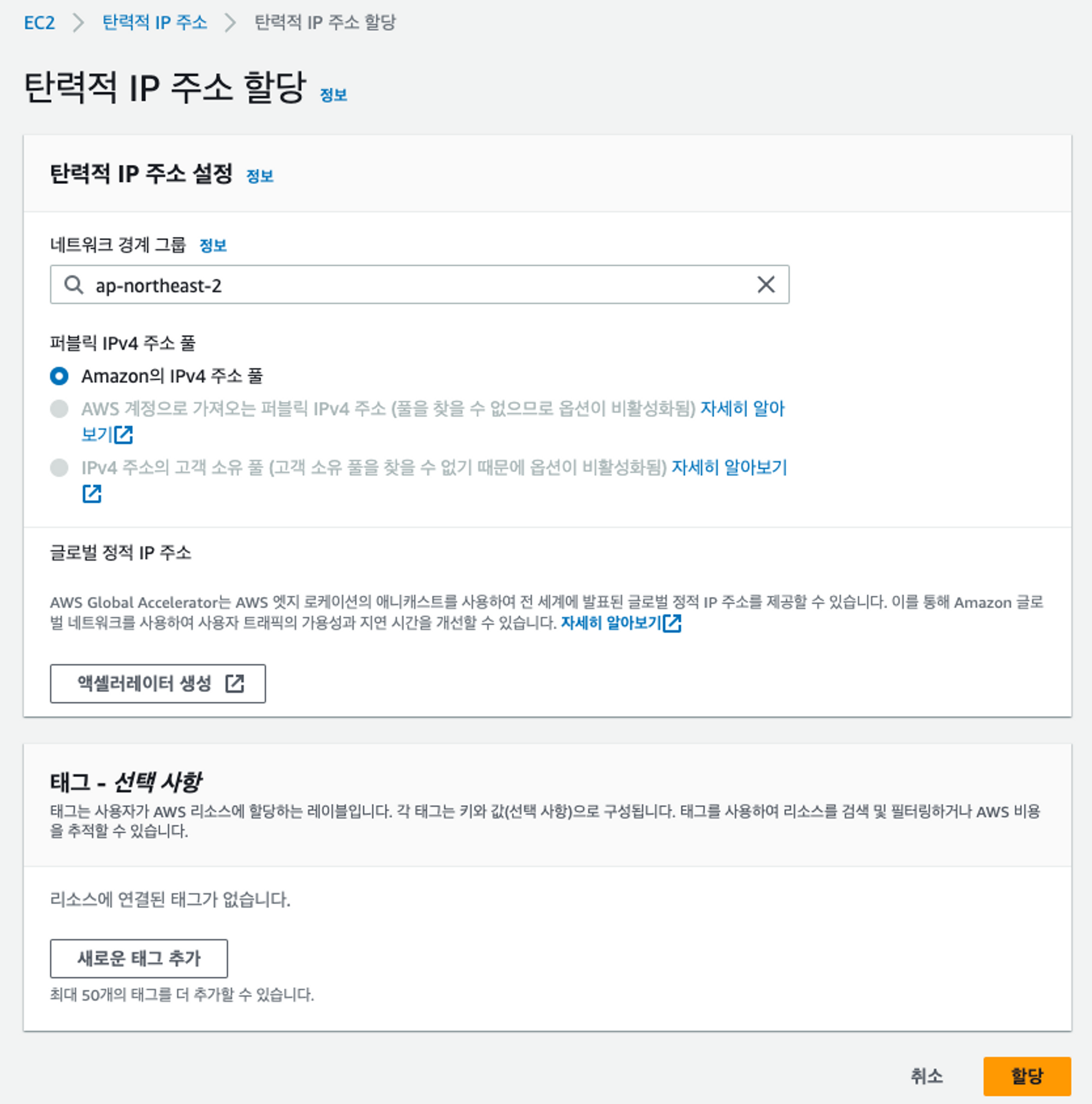 고정 IP를 Elastic IP 탄력적 IP 라고 합니다.
