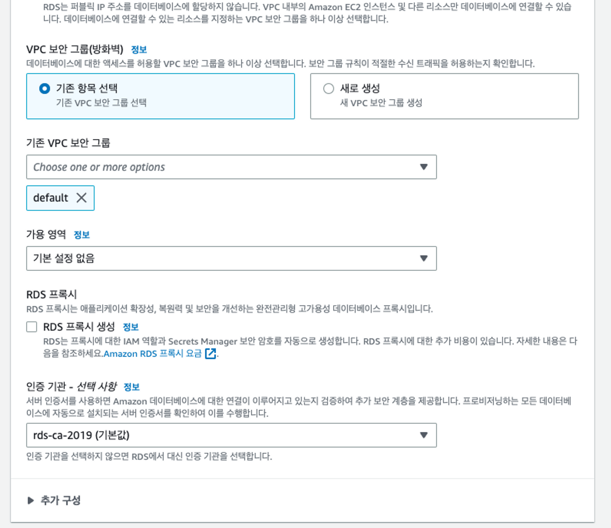 RDS 생성후 몇가지 설정은 필수로 해야한다.