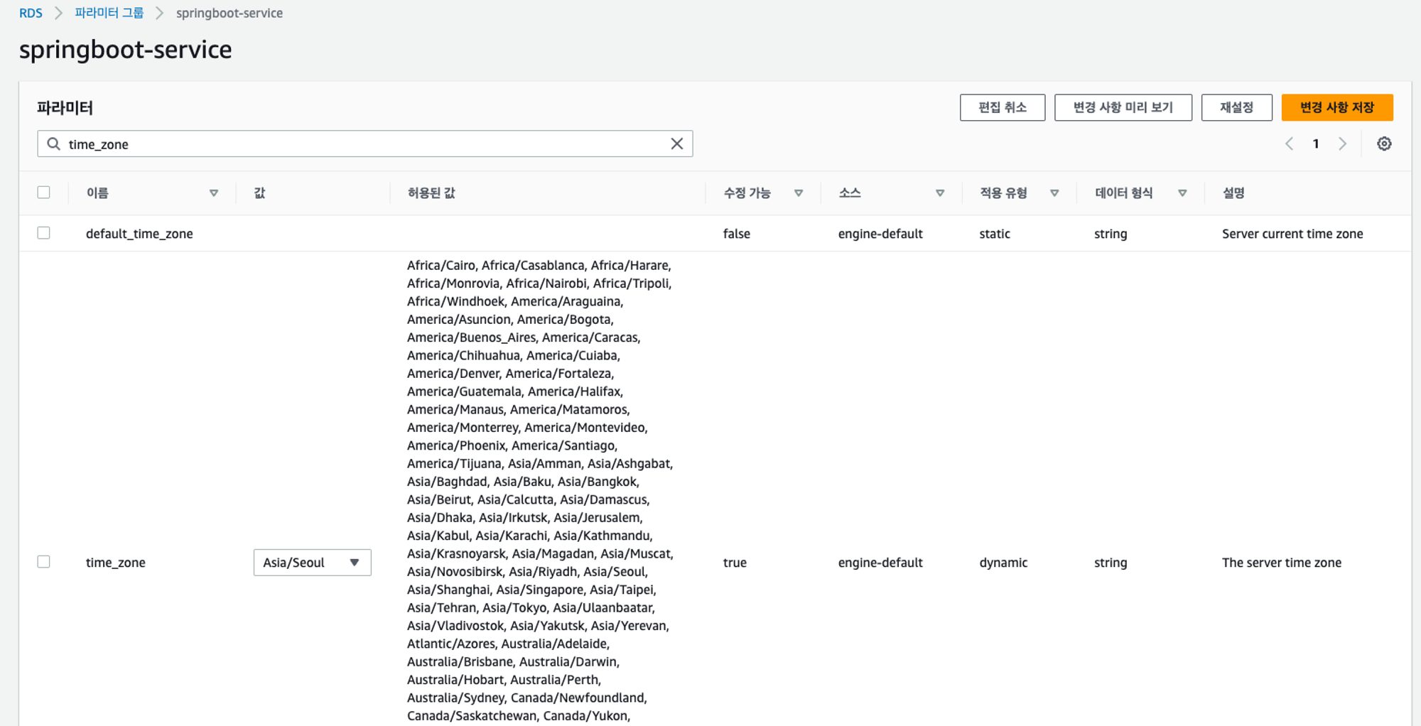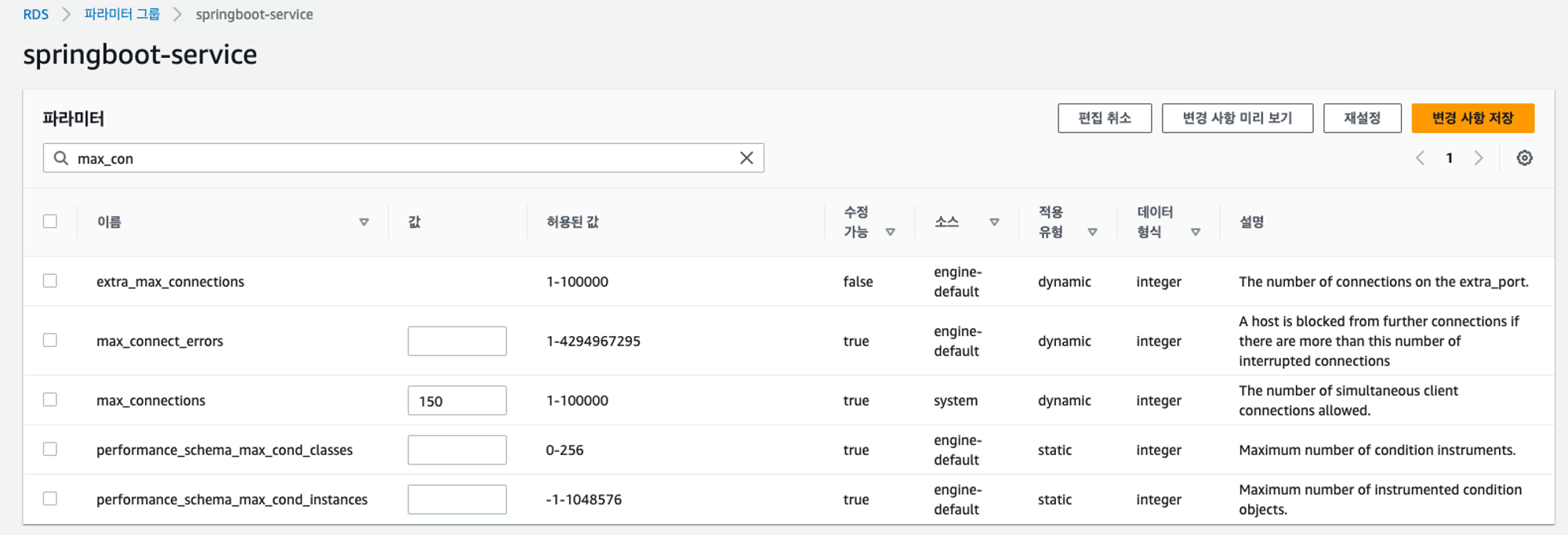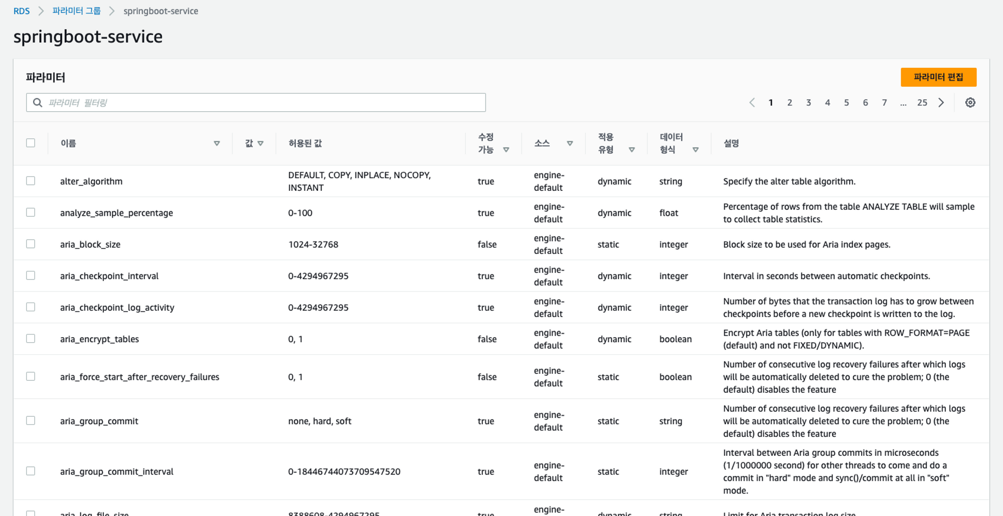 -- MariaDB 에서만 RDS 파라미터 그룹으로 변경이 안됨