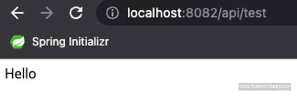 localhost:8082/api/test 로 접근을 하게 되면 Hello를 반환하게 됩니다.