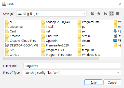 상단위 톱니바퀴 버튼을 클릭하면 Config 파일을 생성할 위치및 이름을 정하고 Save를 해주면 exe 파일이 생성됩니다.