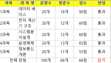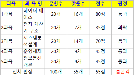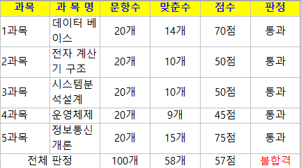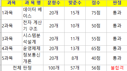 처음에는 불합격만 하다가 풀다보니까 1과목 점수는 확실히 올라갔습니다.